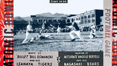 One of the organizers of the Atomic Bowl football contest, Lt. Gerald Sanders later noted that the game was a kind of tribute to fallen colleagues. “We thought it would be totally appropriate,” he said. “It was certainly not to look like there was a joyful glee in what had happened there… We were there, yet we had many buddies that didn’t make it through the war.”