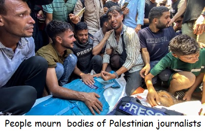 Journalists Ahmed Abu Aziz and Mohamed Salama were killed by Israel along with three other journalists as they responded to the attack on the hospital in southern Gaza’s Khan Younis. The attack killed at least 20 Palestinians, including medics and first responders.